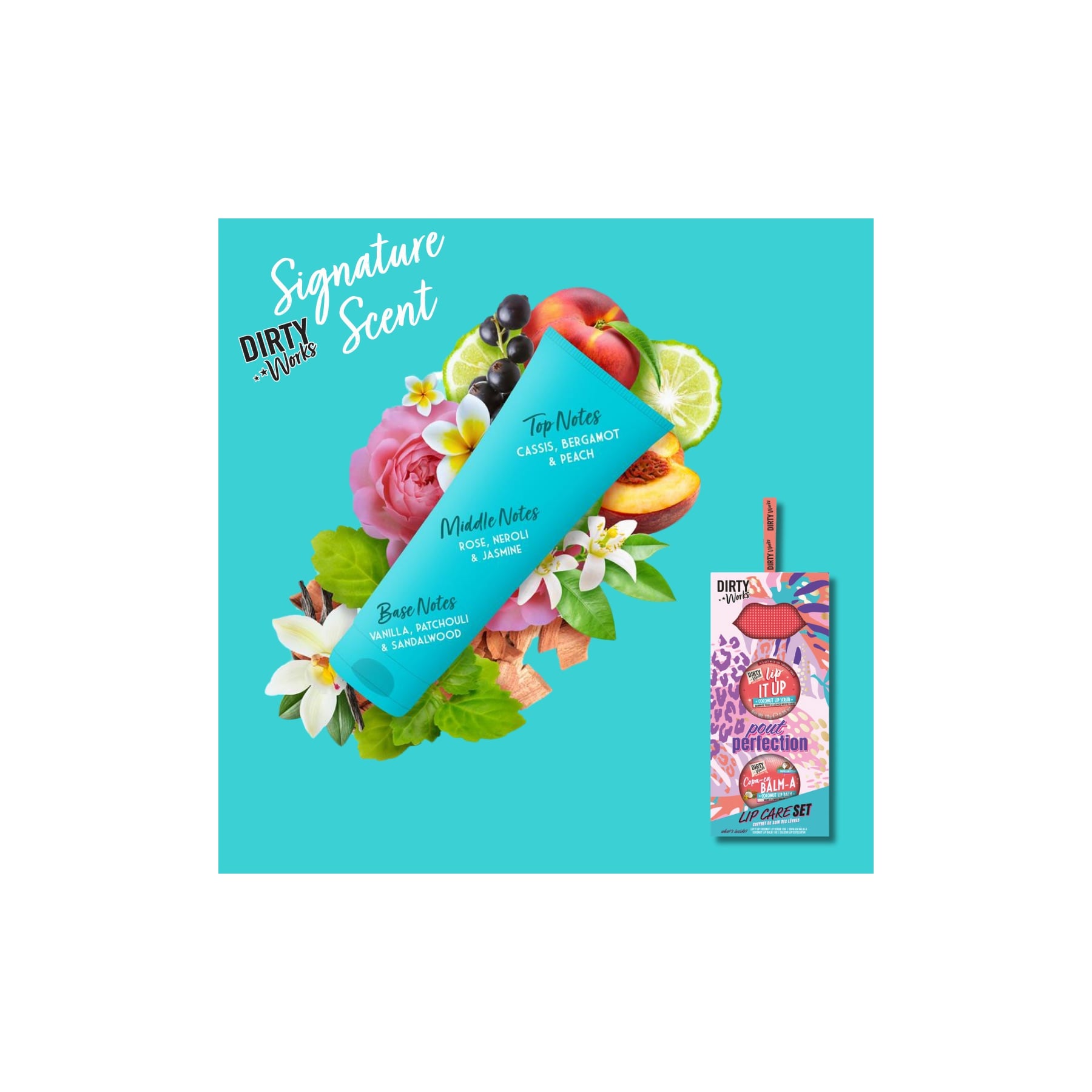 - قولي وداعًا للشفاه المتشققة مع مجموعة العناية بالشفاه Dirty Works Pout Perfection Lip Care Set برائحة جوز الهند - المجموعة المثالية التي تترك شفتيك ناعمة ومدللة، وتجعل شفتيك تبدو مثالية!