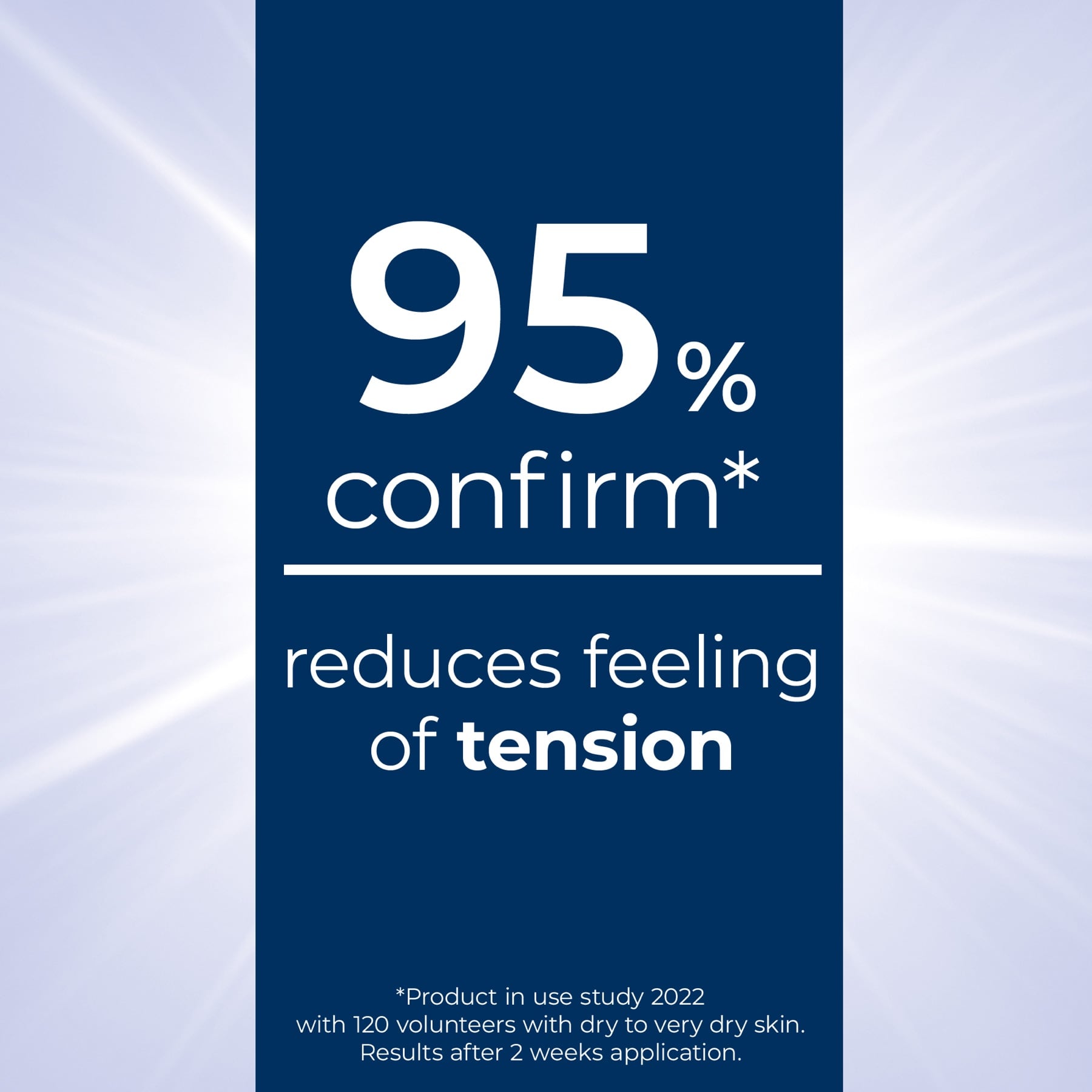 - نعومة مثبتة: تم اختباره سريريًا، حيث يترك جل الاستحمام البشرة تشعر بمزيد من النعومة والتجديد. 95% في دراسة تؤكد أنه يقلل من الشعور بالتوتر* في الجلد (*120 متطوعًا، بشرة جافة إلى جافة جدًا، بعد أسبوعين من الاستخدام، دراسة 2022).
