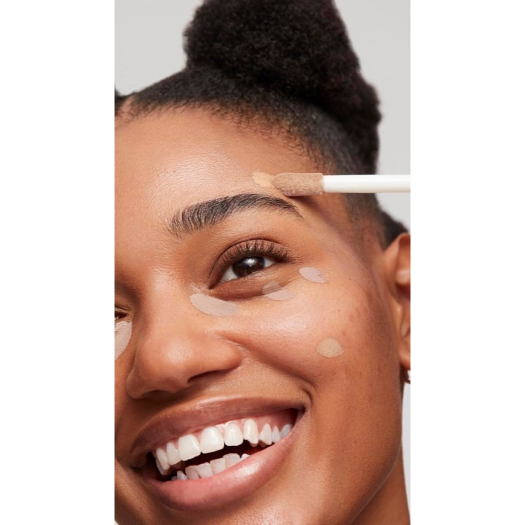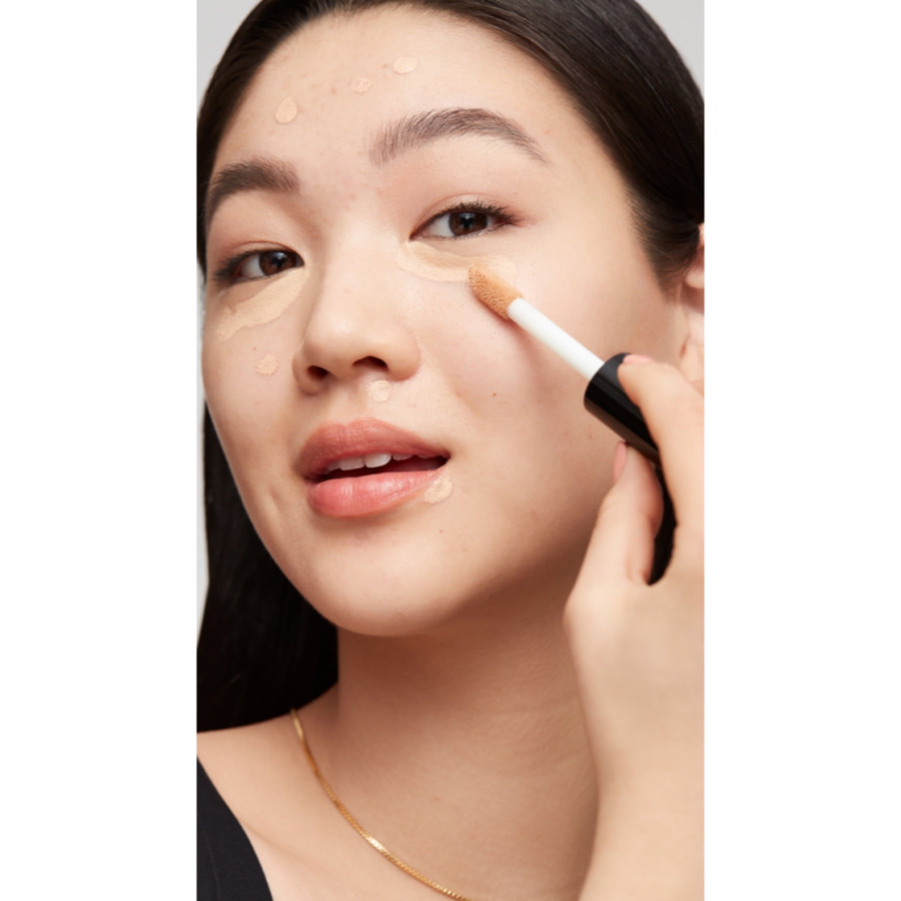 - Using the wand tip, dab on this long-wearing concealer. Build until you have as much coverage as you want.