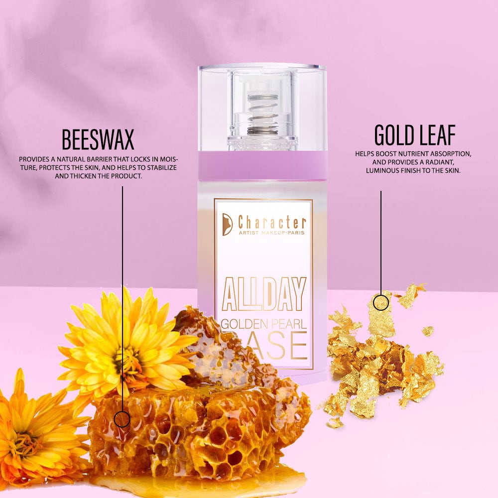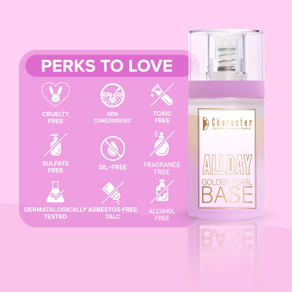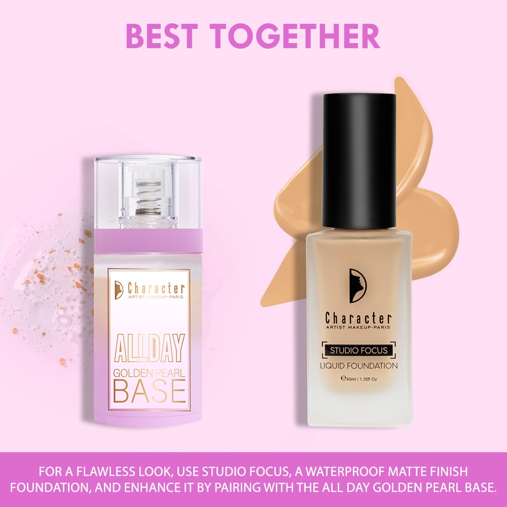 - This Character All Day Golden Pearl Base-CAB003 offers a skin-friendly formula with a lightweight, comfortable feel for all-day wear
