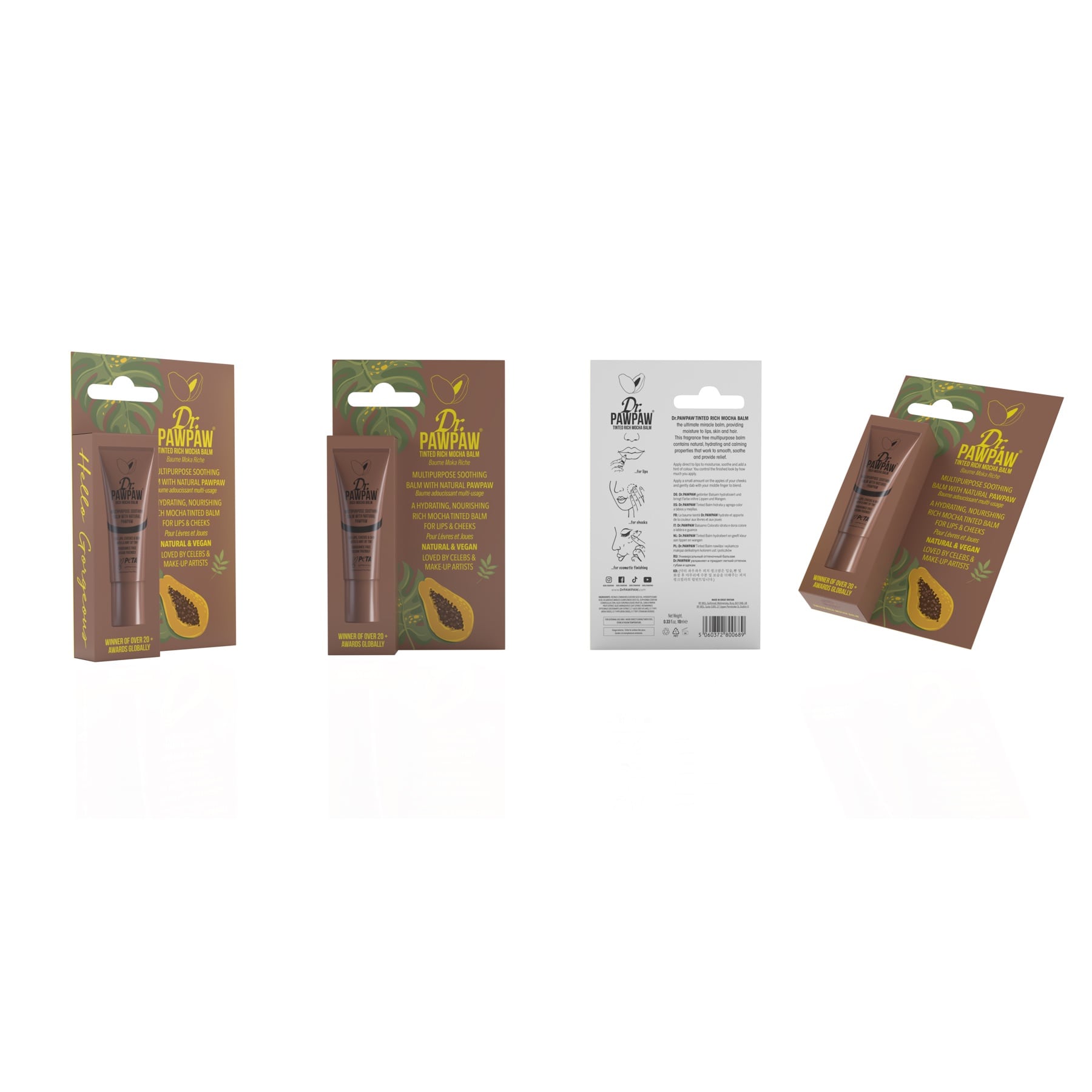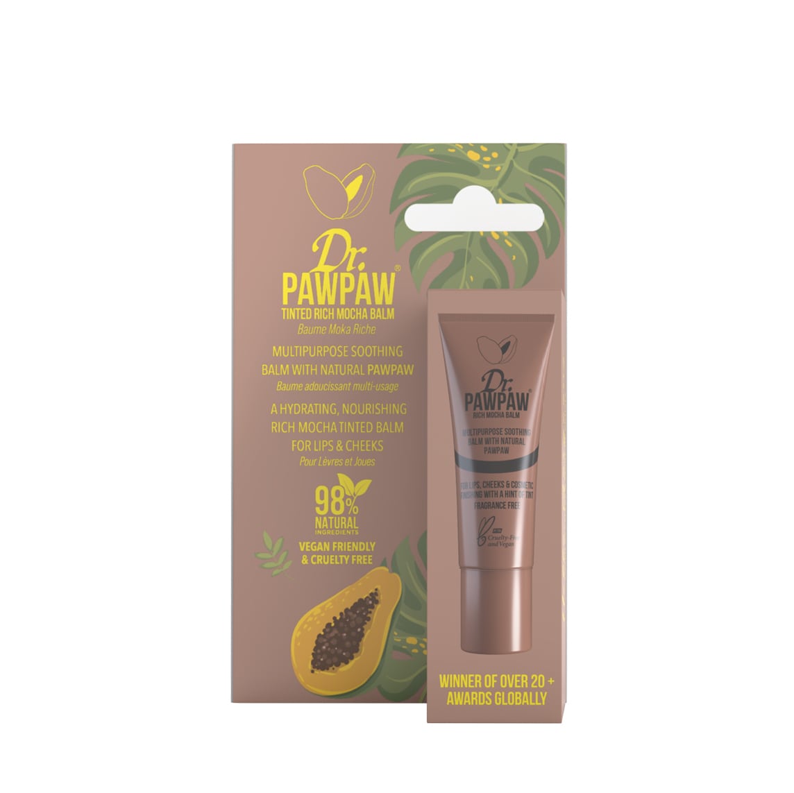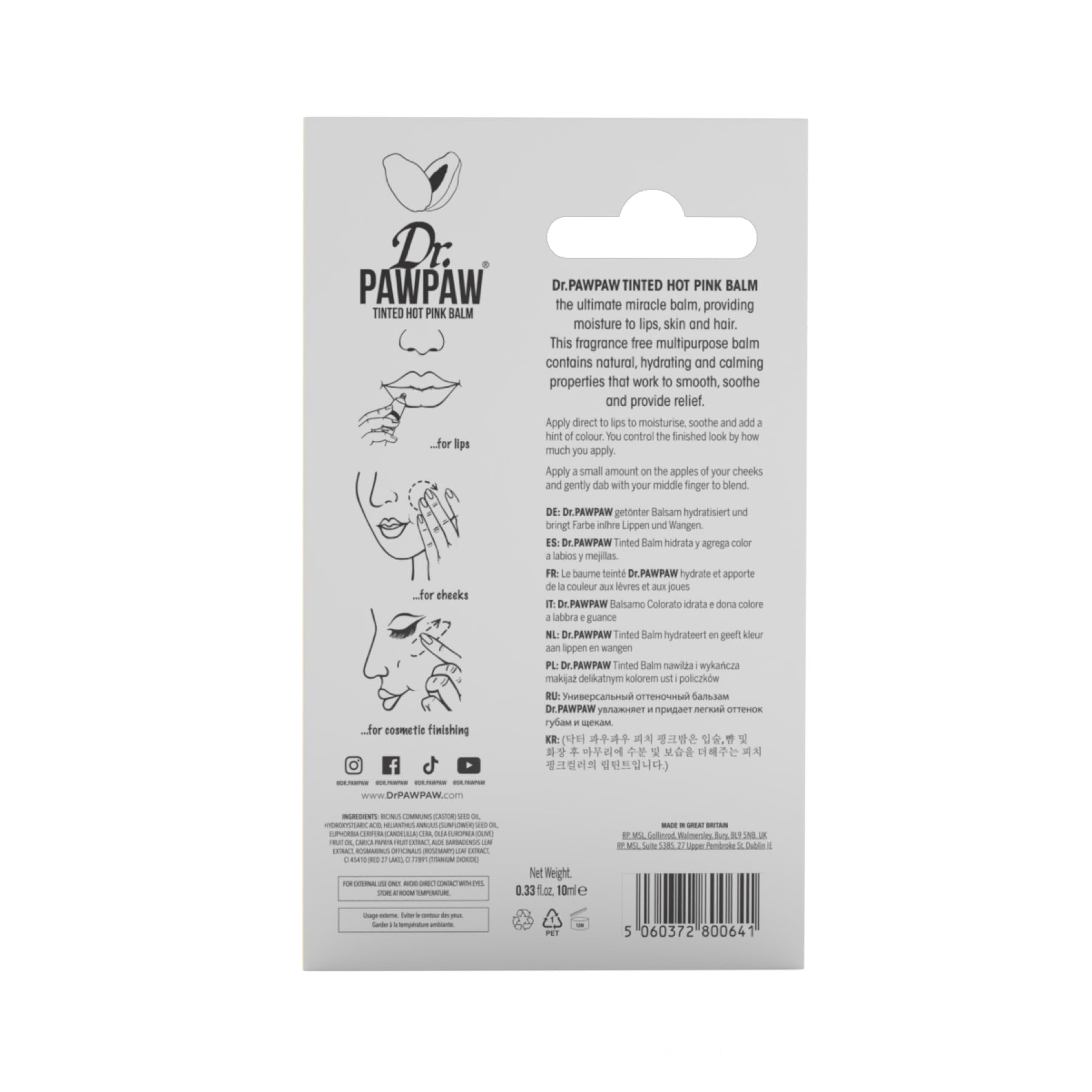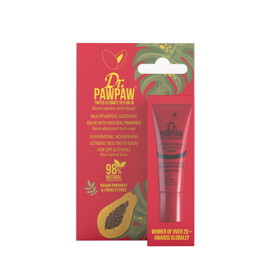 - Dr.PAWPAW Tinted lip Balm can be used in a variety of ways on the lips, cheeks and eyes. Instantly brighten your complexion with this buildable pop of color, perfect for day-to-night looks.