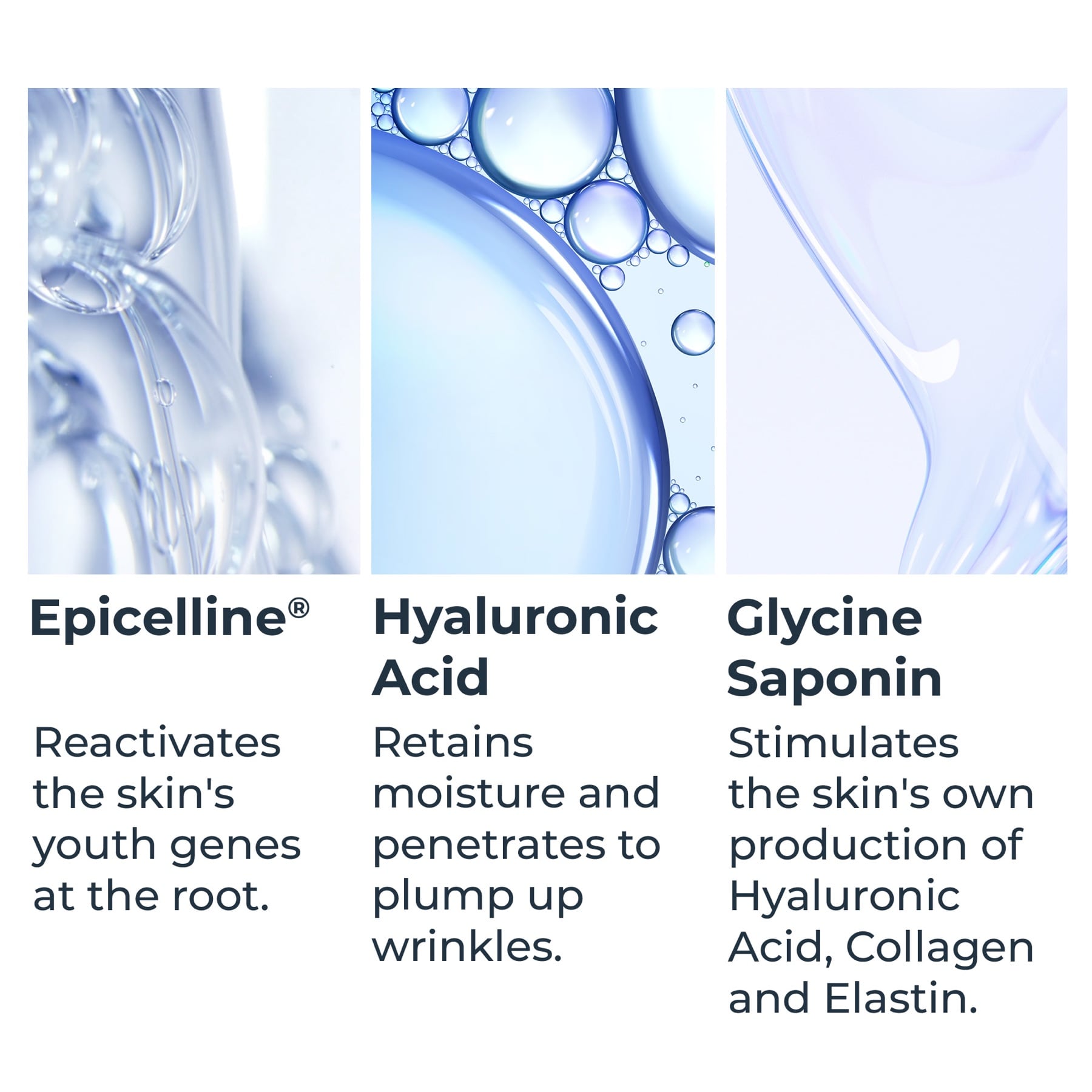 - Powered by Hyaluronic Acid & Glycin Saponin: Hyaluronic Acid Helps Retain Moisture and Penetrates the Skin to Plump Up Wrinkles, While Glycine Saponin Stimulates the Skin’s Natural Production of Hyaluronic Acid, Collagen and Elastin.