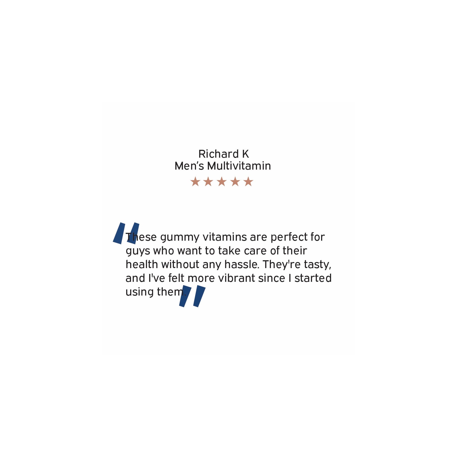 - Live life to the fullest with our men's multivitamin gummy, formulated to enhance your overall health and well-being. Formulated for ages 5 and above. Supports healthy heart function Fights fatigue Improves mental performance