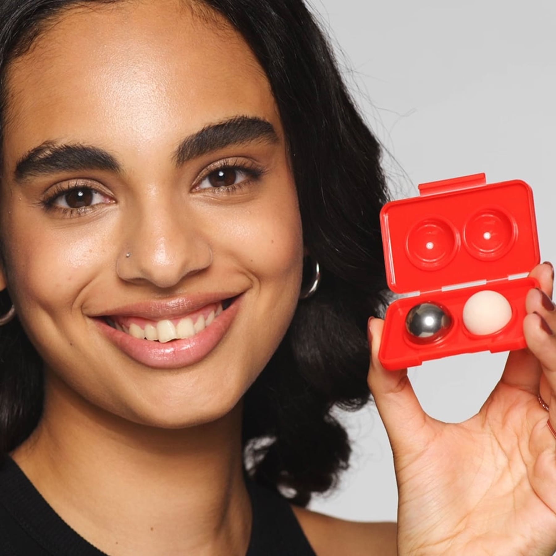 - Stainless-steel ball cools and depuffs skin.