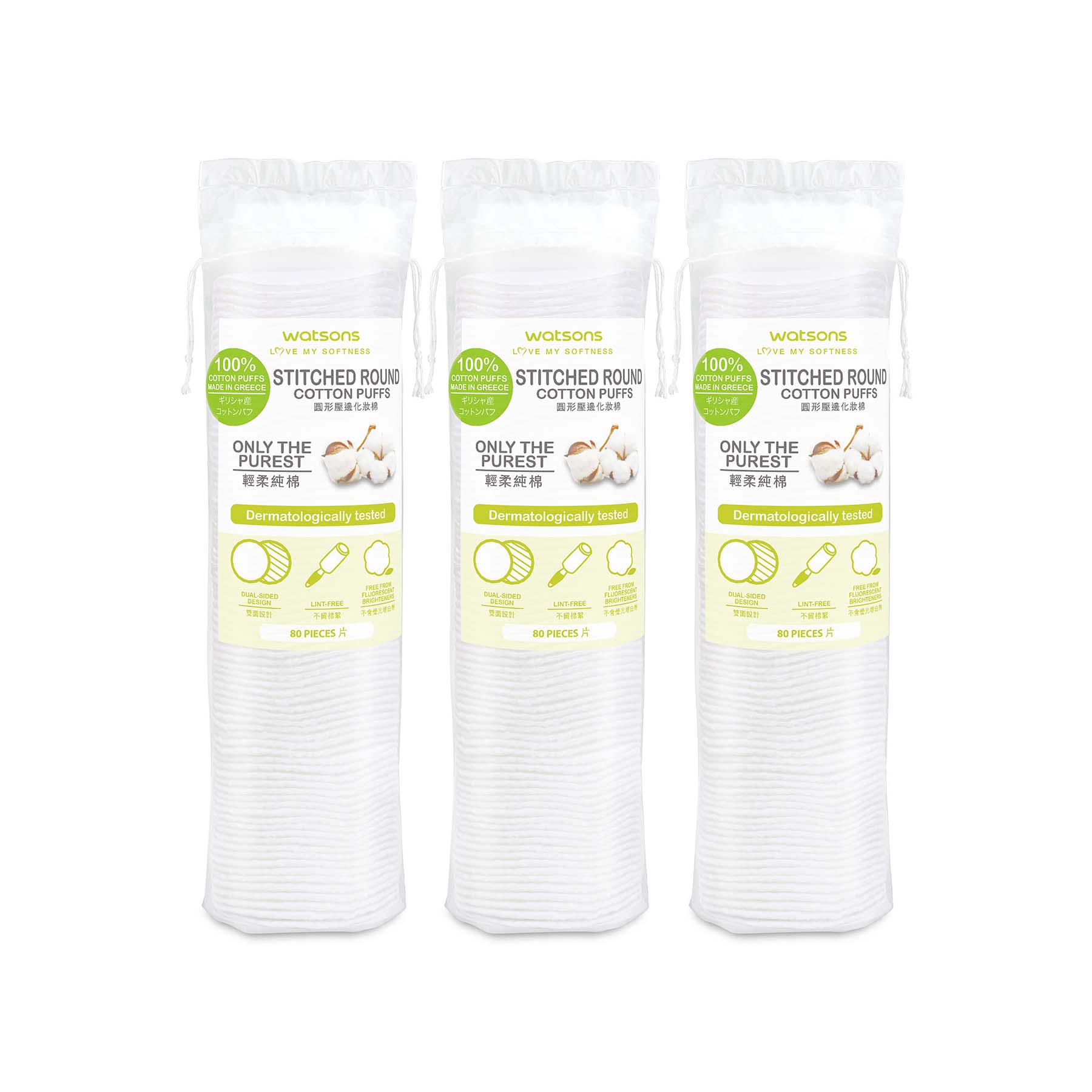 Stitched Round Cotton Puffs 80pcs x 3 packs