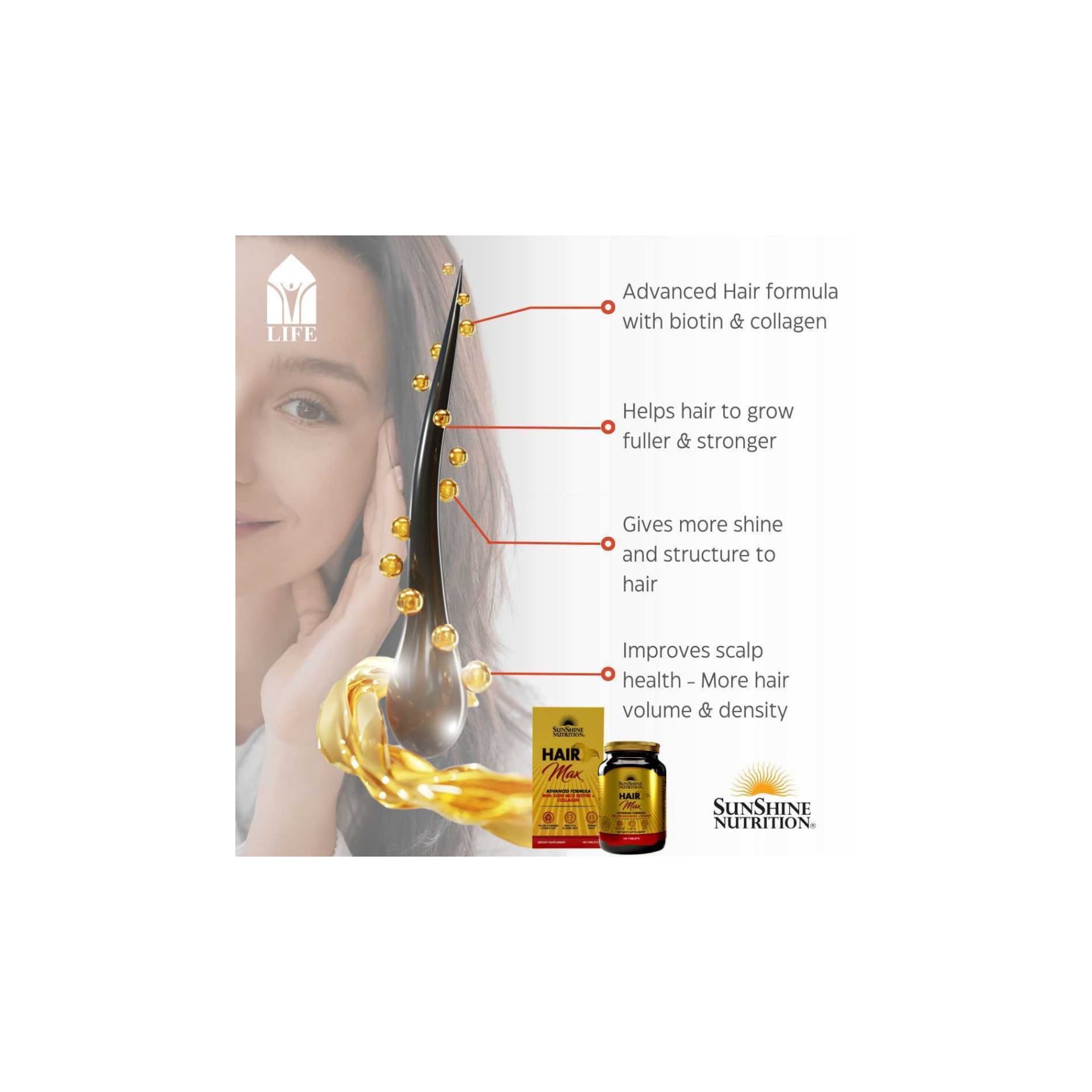 - Support hair health with Sunshine Nutrition Hair Max 100 Tablets