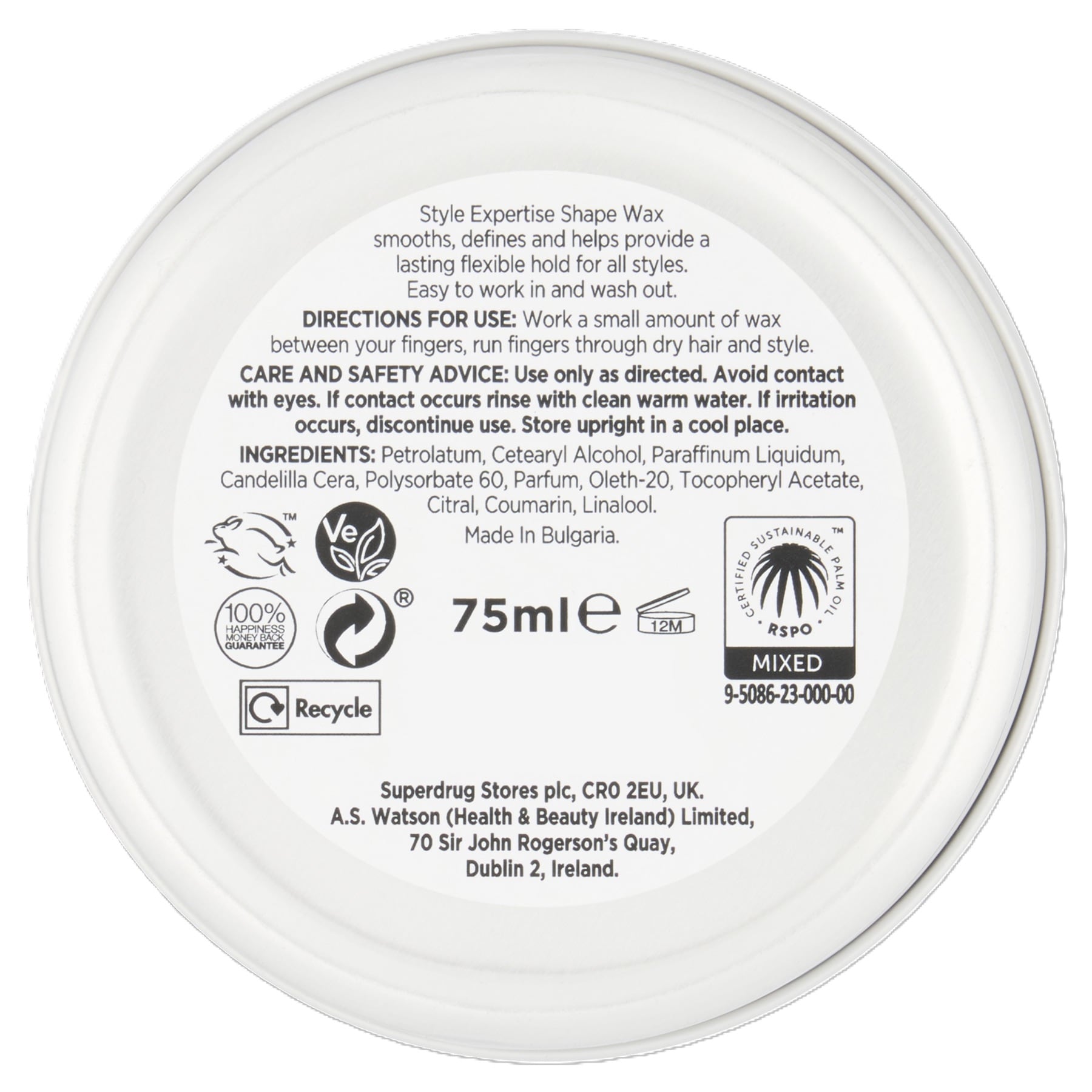 - Style Expertise Wax smooths, defines and helps provide a lasting flexible hold for neat syles or short choppy looks. Easy to work in and wash out.