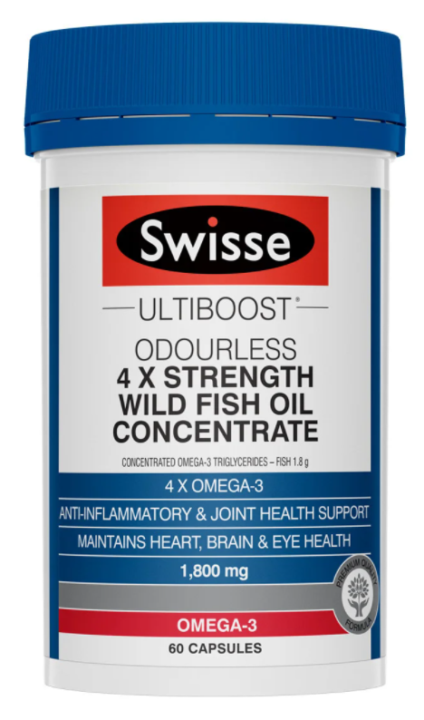 - Swisse Ub Odourless 4x Strength Wild Fish Oil Concentrate 60 Cap offers concentrated omega-3 support for heart, brain and eye health